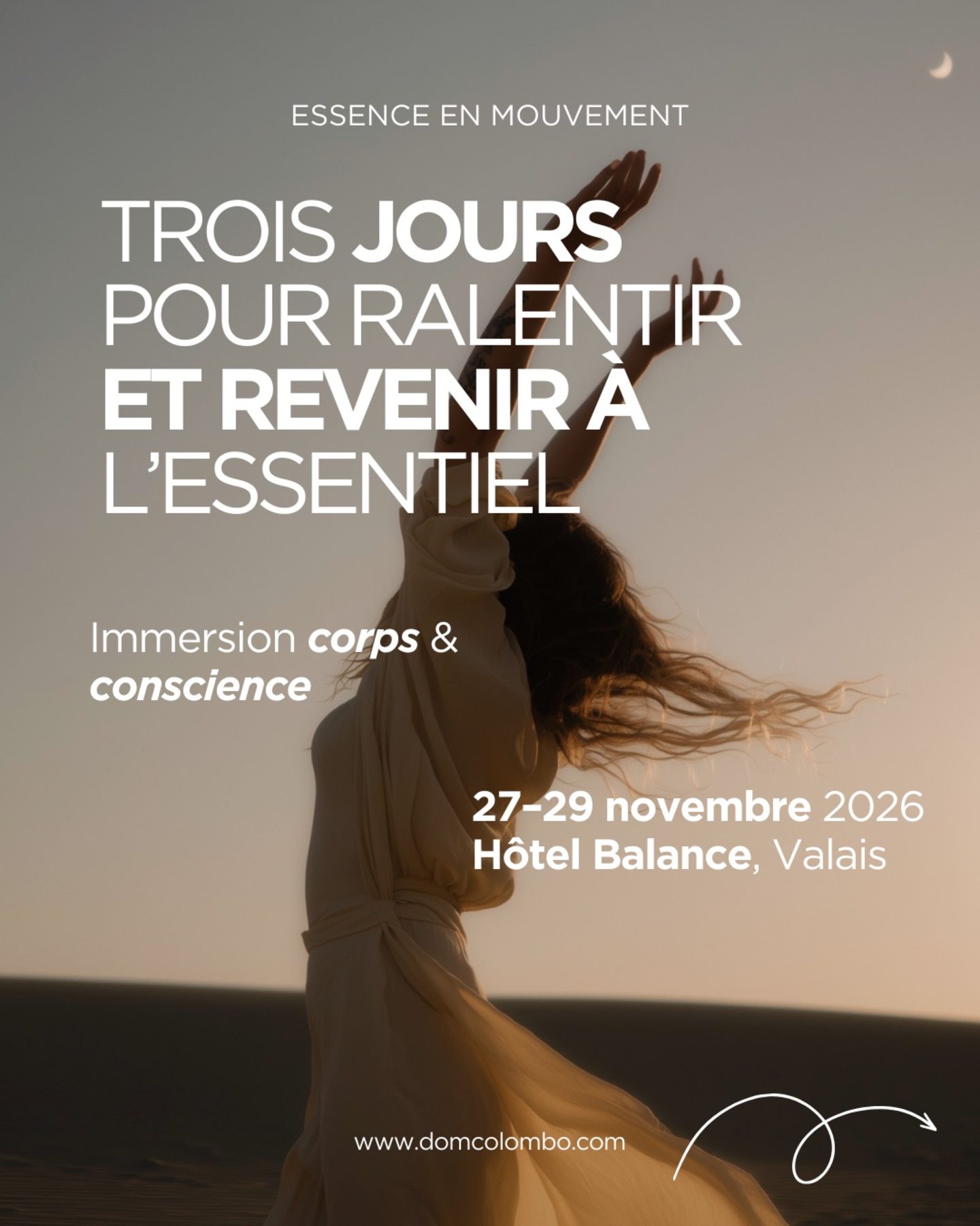 Dans le cadre apaisant de l’Hôtel Balance, au cœur du Valais, Essence en mouvement est une retraite pensée comme une pause consciente, un retour à soi à travers des pratiques douces, profondes et régulatrices.